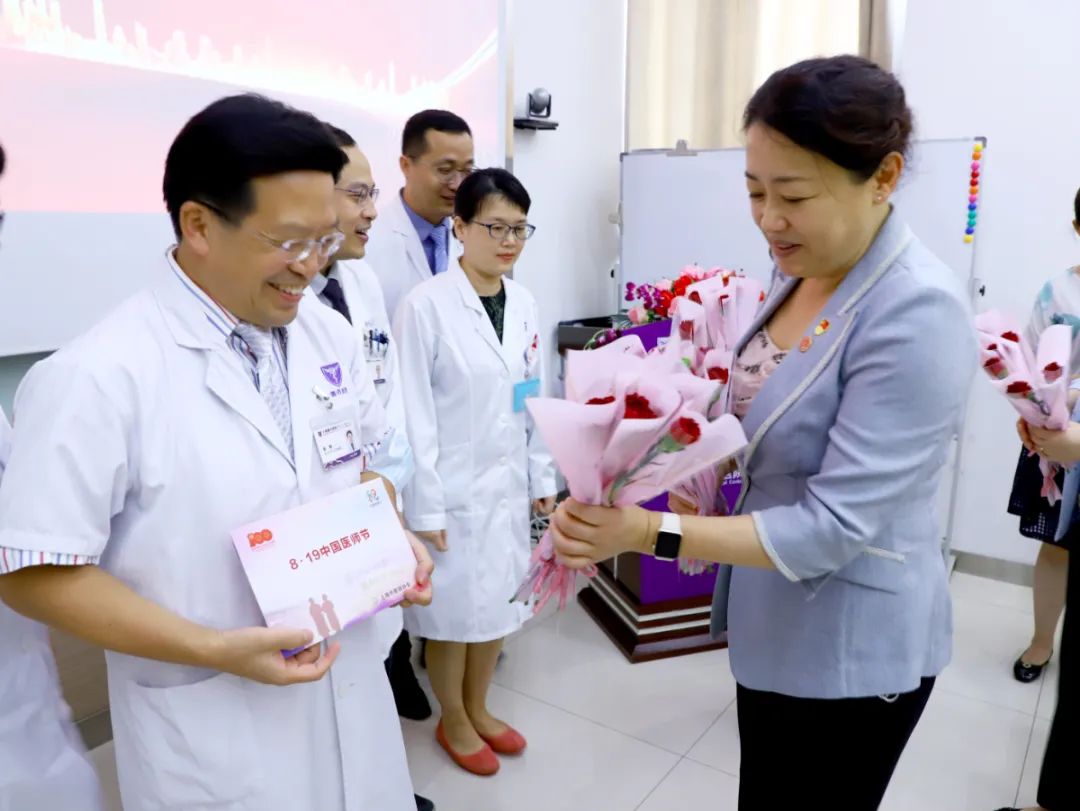 上海市医师协会秘书长田红表示,“百年华诞同筑梦,医者担当践初心”是今年中国医师节的主题,一方面要加强医师队伍的建设工作,一方面要弘扬医师的先进事迹。上海市医师协会作为医师之家,此次受上海医师协会会长徐建光、常务副会长谭鸣委托为上海德济医院送上鲜花和贺卡,希望能为医师大家庭做一些事情,共同助推健康上海、健康中国建设。