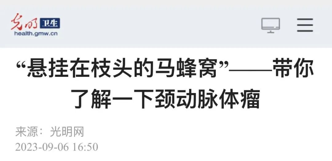 本稿原文链接:“悬挂在枝头的马蜂窝”——带你了解一下颈动脉体瘤