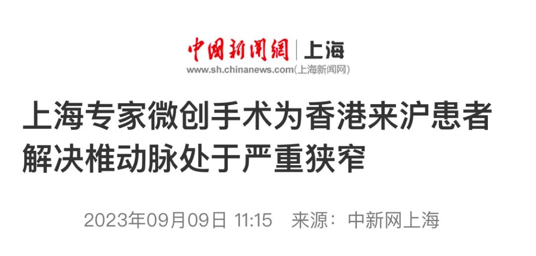 本稿原文链接:上海专家微创手术为香港来沪患者解决椎动脉处于严重狭窄