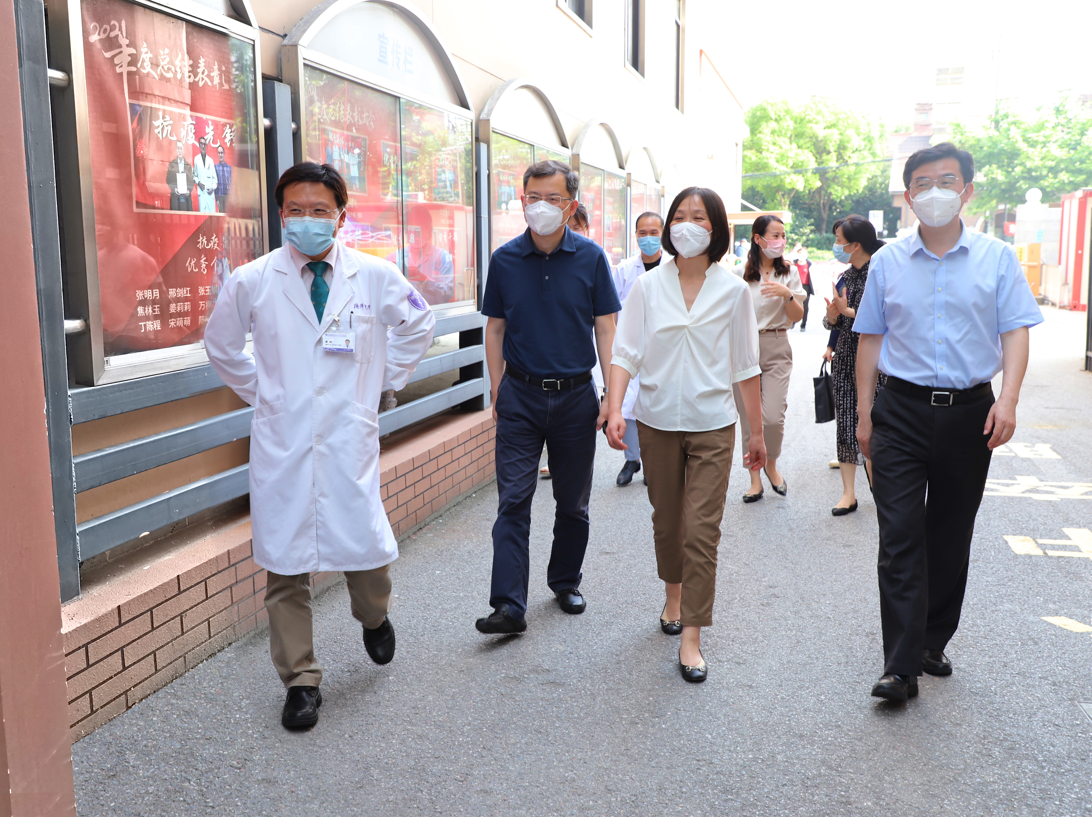 6月14日下午,普陀区委副书记周艳走访上海德济医院/青岛大学脑科医学中心、代表区委区政府和全区人民,看望慰问一线医务人员。区卫生健康工作党委书记邓海巨、区卫生健康委主任奉典旭、区卫生健康工作党委副书记陆静静陪同。