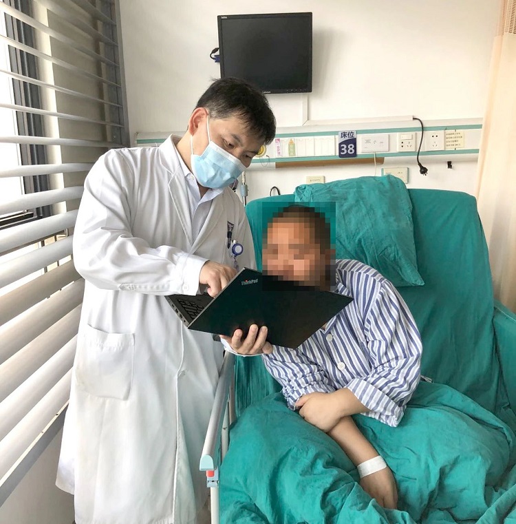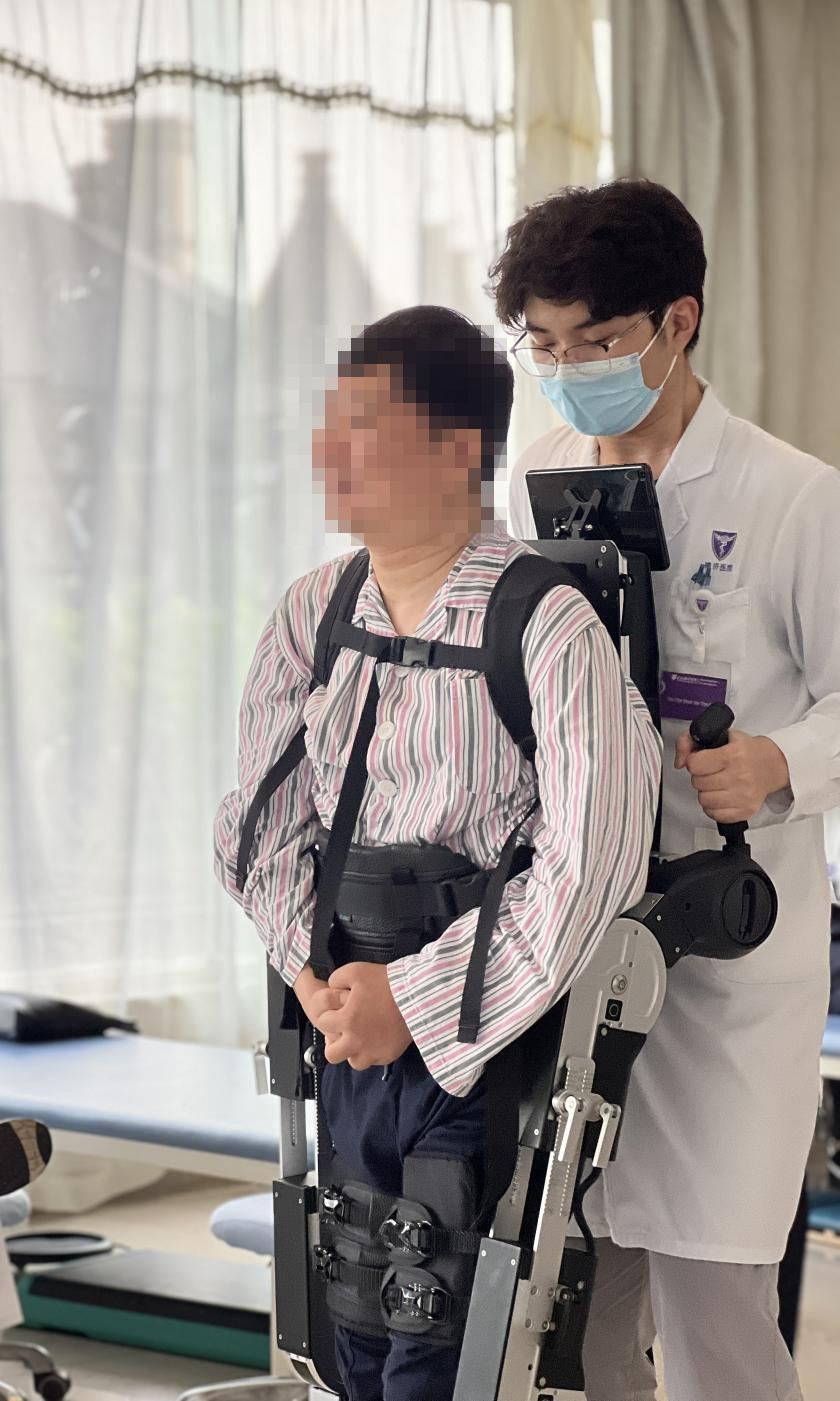 ▲康复的路上,我们陪着你走——患者正借助外骨骼机器人练习其肢体功能,这是他患病四年来第一次走路。“好久没看到他站着笑了”,患者妈妈哽咽道。