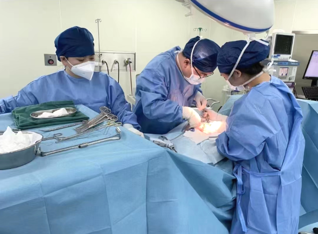 ▲一台特殊时期的急诊穿孔手术。助手小姑娘由于体力透支而感到有些疲惫,她正在一旁拉钩,持续十几秒钟就已经气喘吁吁,但她仍坚持顺利完成手术。