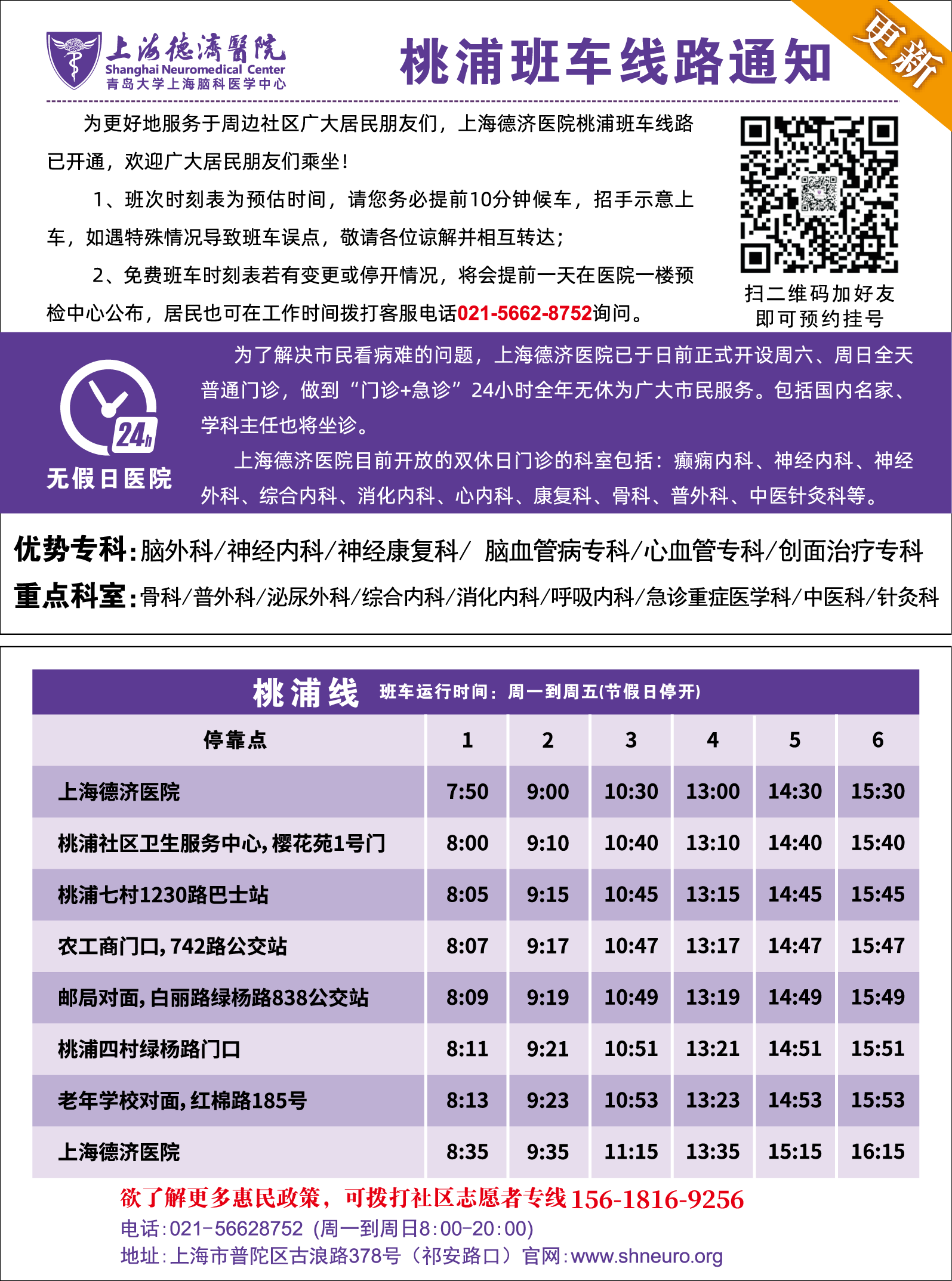 为更好地服务于周边社区广大居民朋友们,上海德济医院桃浦班车线路已开通,欢迎广大居民朋友们乘坐!(可截图保存)