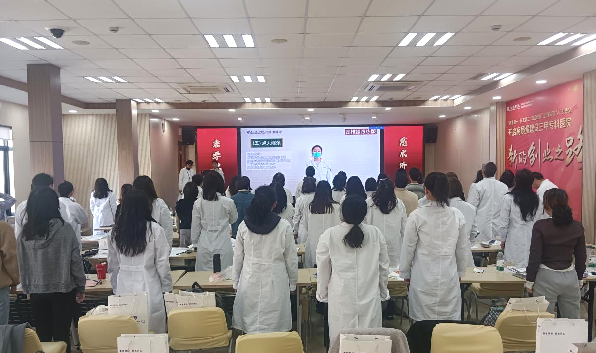 培训在“教你如何利用碎片时间锻炼身体”日常实用的锻炼课程中进入尾声。在VIP保健中心胡海燕主任的指导下,学员们认真学习了康复操的动作要领,并进行了实际操练。在充满活力的现场氛围中,学员们掌握了在日常生活中简单有效锻炼身体的科学方法,帮助他们提升健康素养,增强身体素质。