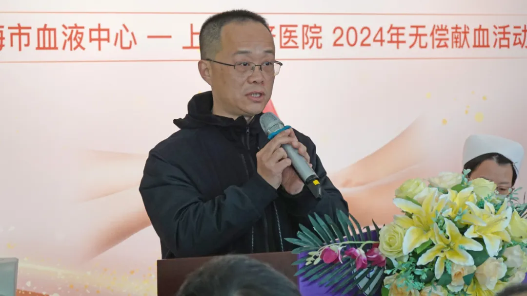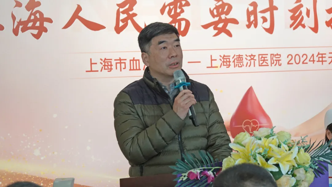 普陀区卫健委刘晔翔副主任随后发表了热情洋溢的讲话。他首先表达了三个感谢后表示,血液事业是卫生事业的重要组成部分,无偿献血事业的繁荣发展,不仅需要全社会的广泛支持,更离不开广大市民和志愿无偿献血者的积极参与。在全市医疗用血需求攀升的当下,大家的付出尤为珍贵。他向在场为无偿献血工作付出辛勤劳动的德济医务人员致以亲切的问候,向每一位以爱心、奉献精神和热血挽救生命的志愿无偿献血者表达了最诚挚的敬意和感谢。