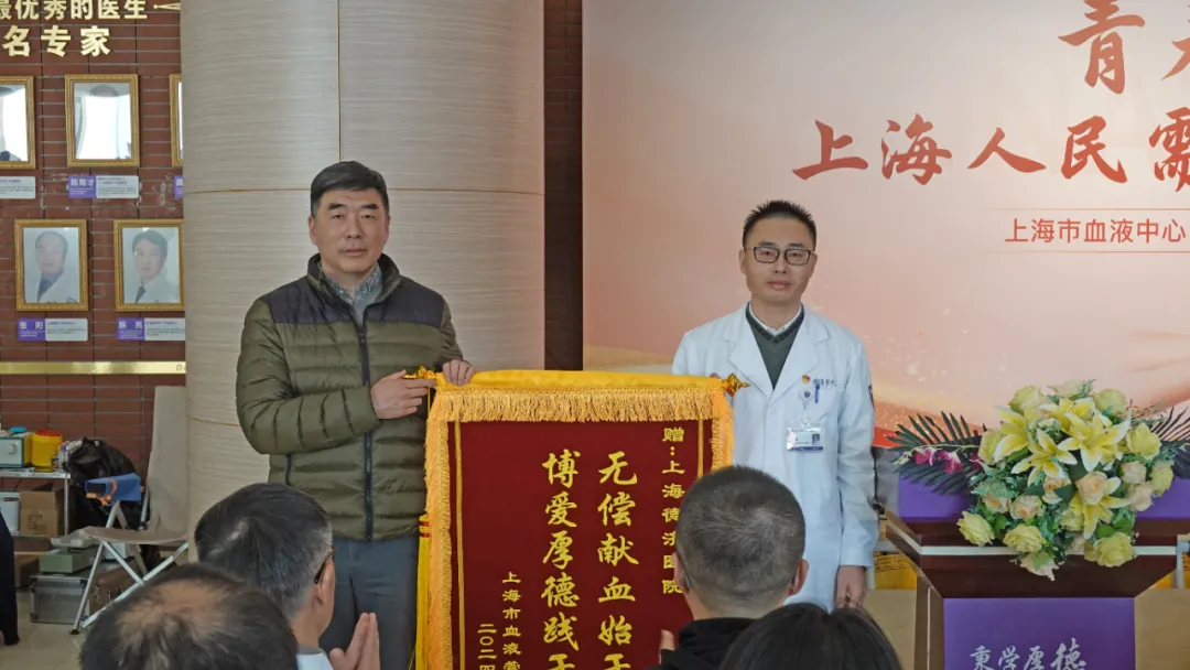 在众人瞩目中,林俊杰书记代表上海市血液中心与上海市血液管理办公室,庄重地将写着“无偿献血始于心,博爱厚德践于行”的锦旗授予上海德济医院/青岛大学上海脑科医学中心,借此传达对医院鼎力相助此次公益活动的由衷感激。
