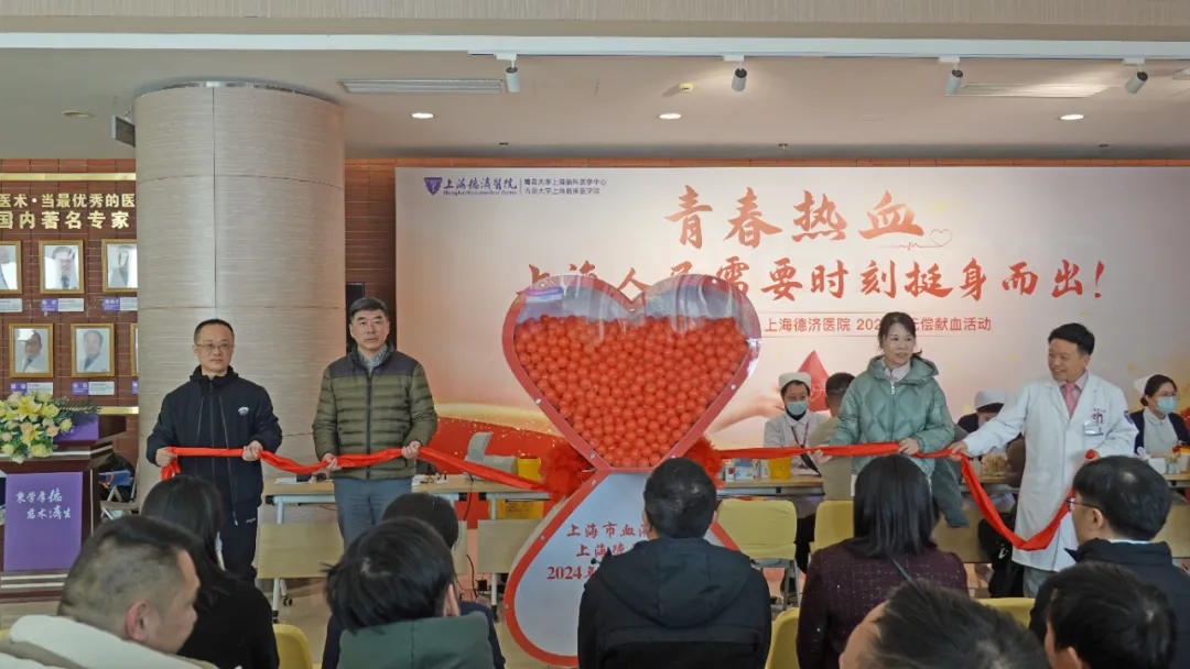 为了缓解上海市临床用血压力,防范可能发生的紧急生命抢救缺血问题,上海市血液中心,上海市普陀区卫生健康委员会、上海市普陀区卫生健康促进中心(上海市普陀区血液管理办公室)、上海德济医院/青岛大学上海脑科医学中心于12月22日共同举办了一场大型公益无偿献血活动。上海市血液中心党委书记林俊杰教授,上海市普陀区卫生健康委员会副主任刘晔翔先生,上海市普陀区卫生健康促进中心(上海市普陀区血液管理办公室)主任朱萍女士莅临现场,上海市领军人才、“上海市十佳医生”提名奖获得者、上海德济医院院长郭辉教授,中共上海德济医院党支部书记、麻醉科主任谢致教授与上海德济医院副院长、检验科主任张振教授共同出席了活动。