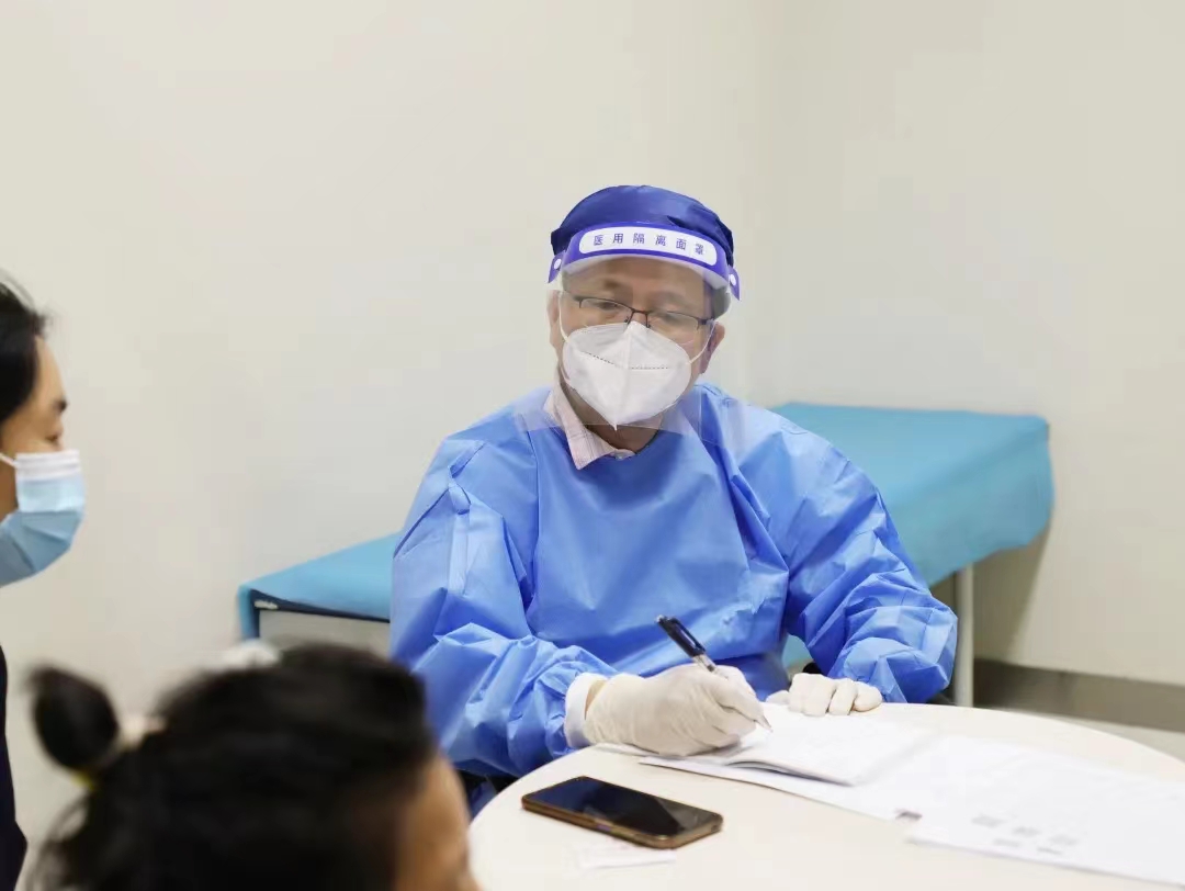 ▲神经外科主任龚德山正在为患者义诊
